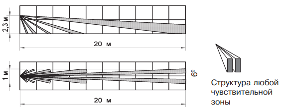 | Угол зоны (Охранные датчики) | 8° линейная |