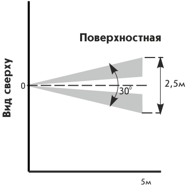| Угол зоны (Охранные датчики) | 90° объемная |