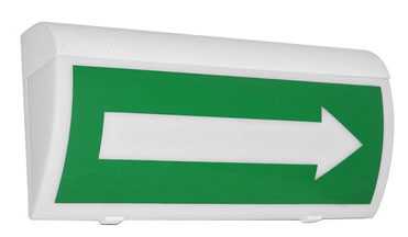 При пожаре оповещатель подсвечивает табло с указателем «СТРЕЛКА ВПРАВО» мигающим белым светом, информируя окружающих о произошедшем возгорании и необходимости покинуть помещение по направлению в соответствии с указателем.